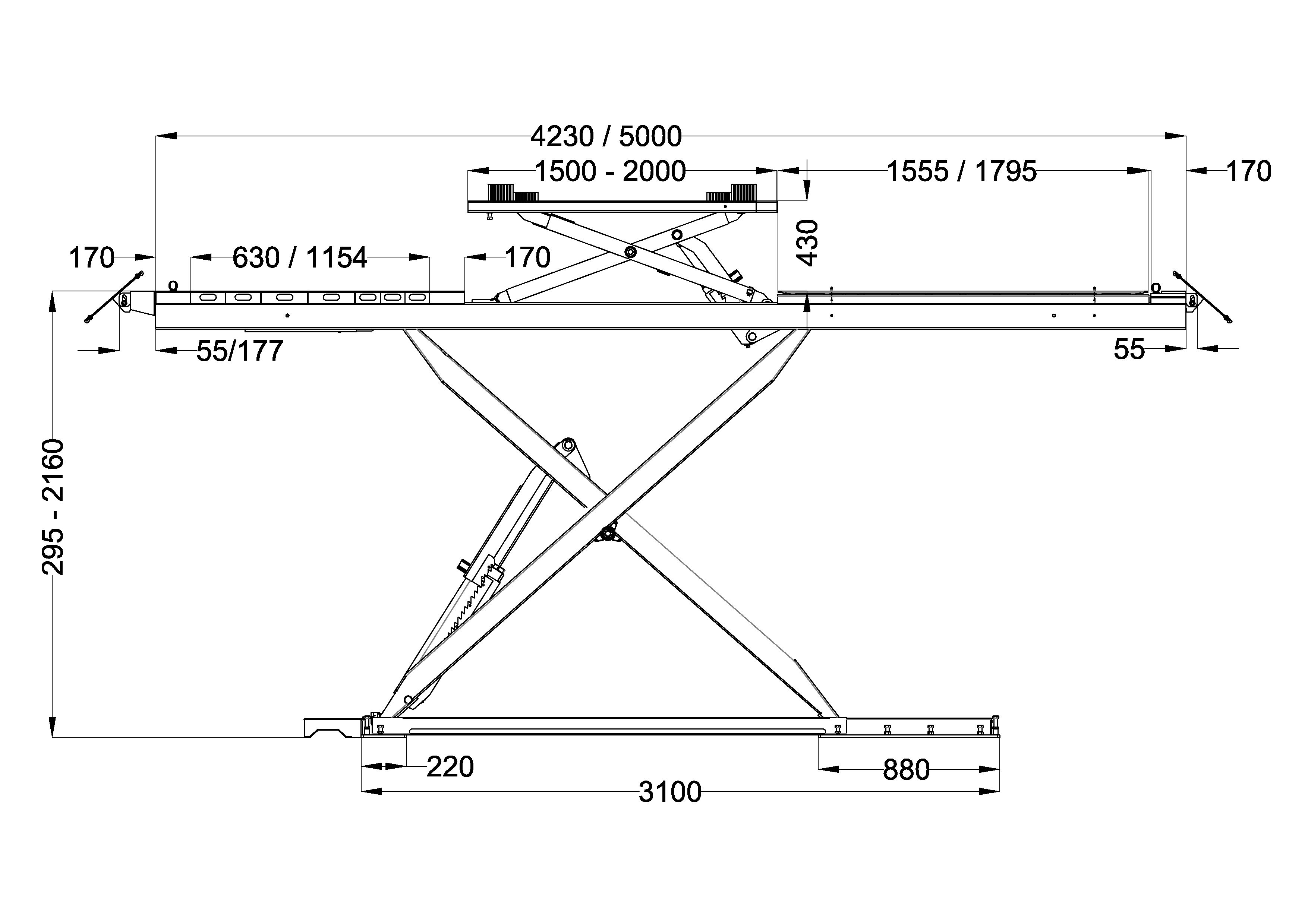 • Hochwertige und robuste Auffahrscherenhebebühne mit hydraulischem Antrieb, nahezu wartungsfrei